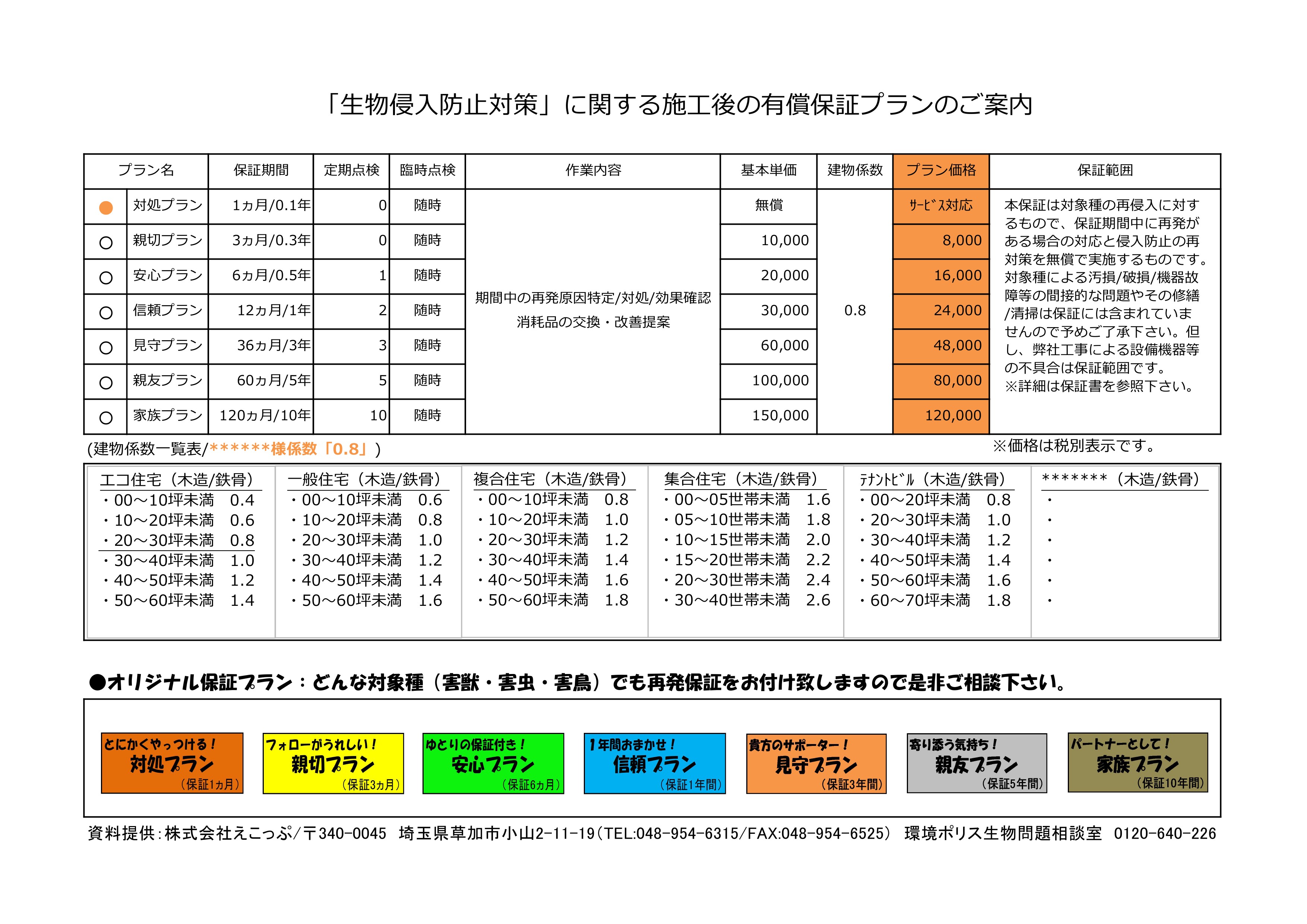 ※対象環境の変化(リフォーム/増改築/設備工事等)により再発する事もありますので、長期プランは定期点検も付帯されています。